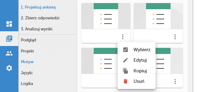 - Utwórz nowy motyw ankiety lub wciśnij przycisk