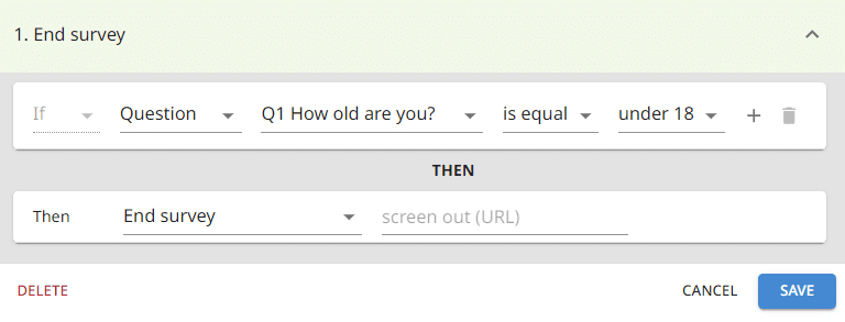 UWAGI. Pamiętaj, aby umieścić logikę wykluczającą (screen-out) na początku ankiety. Respondenci mogą być sfrustrowani, jeśli zostaną wykluczeni po poświęceniu czasu na jej wypełnienie.